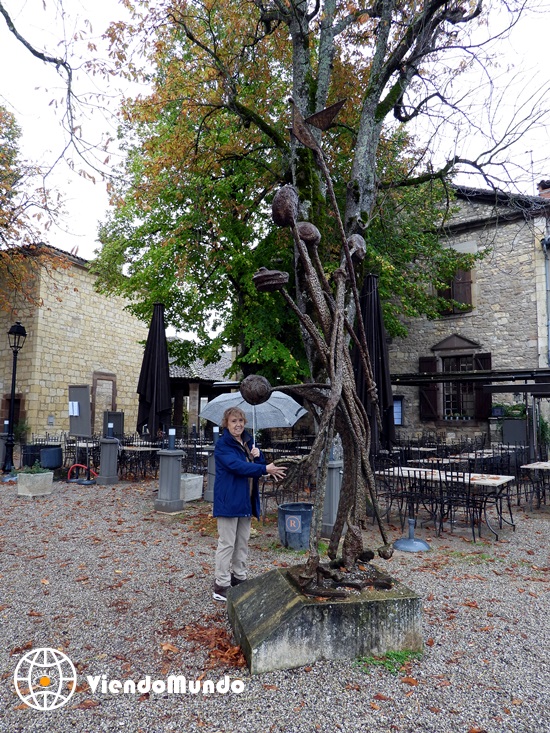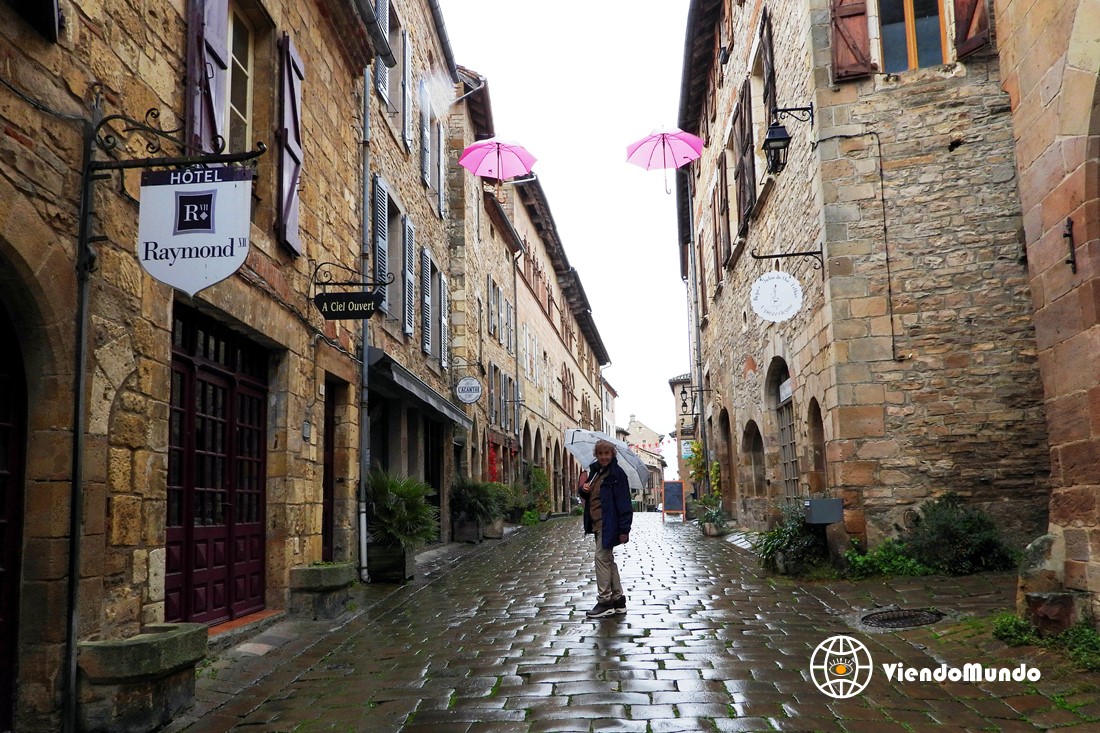 Sin embargo, hoy por la mañana la lluvia era llevadera y nos hemos acercado a visitar "Cordes-sur-Ciel", un pueblo medieval encaramado en una colina y que está considerado como uno de los grandes atractivos de "Occitania". A pesar de que había que subir por callejuelas muy empinadas y con adoquines que te hacían resbalar por el agua, nos ha encantado el pueblo porque parecía que habíamos viajado en el tiempo a varios siglos anteriores, encontrando una arquitectura de edificios medievales, aunque hoy en día alberguen tiendas de souvenirs. Cerca de un par de horas nos ha llevado subir y bajar deambulando por calles vacías, lo que ha hecho que disfrutáramos en solitario de un entorno de otro siglo.