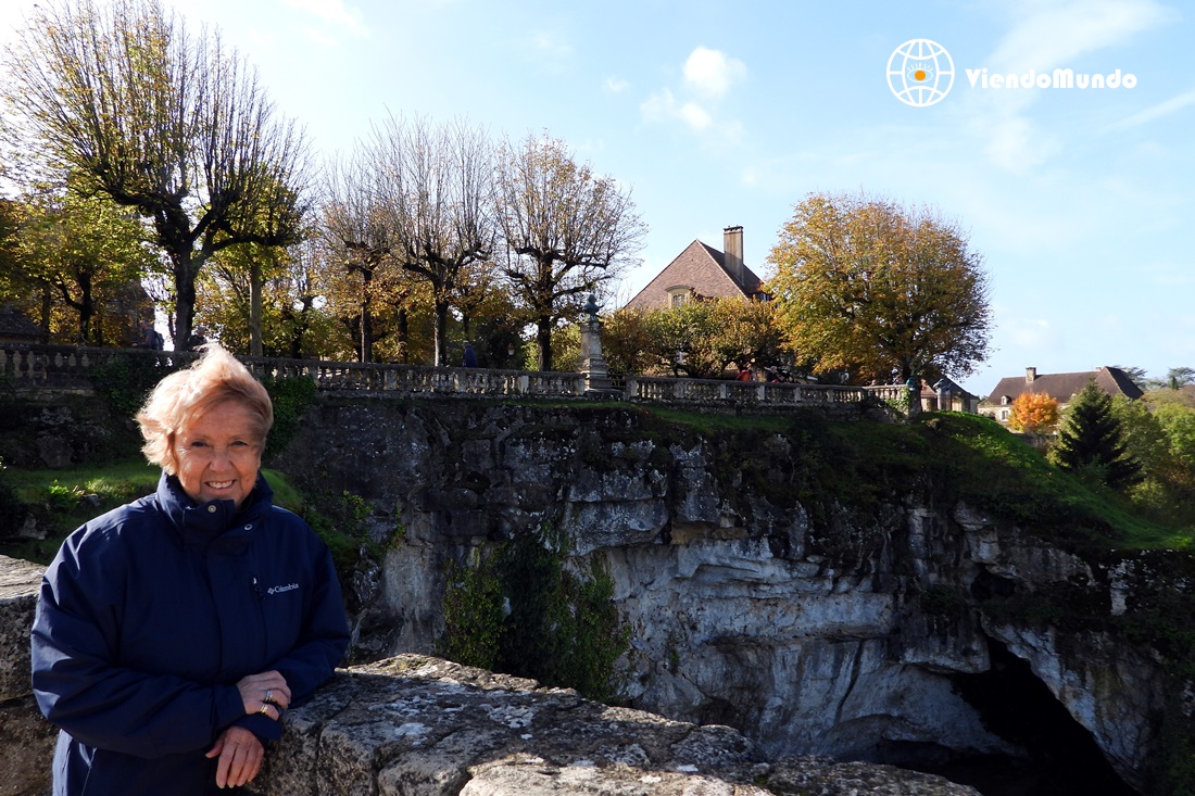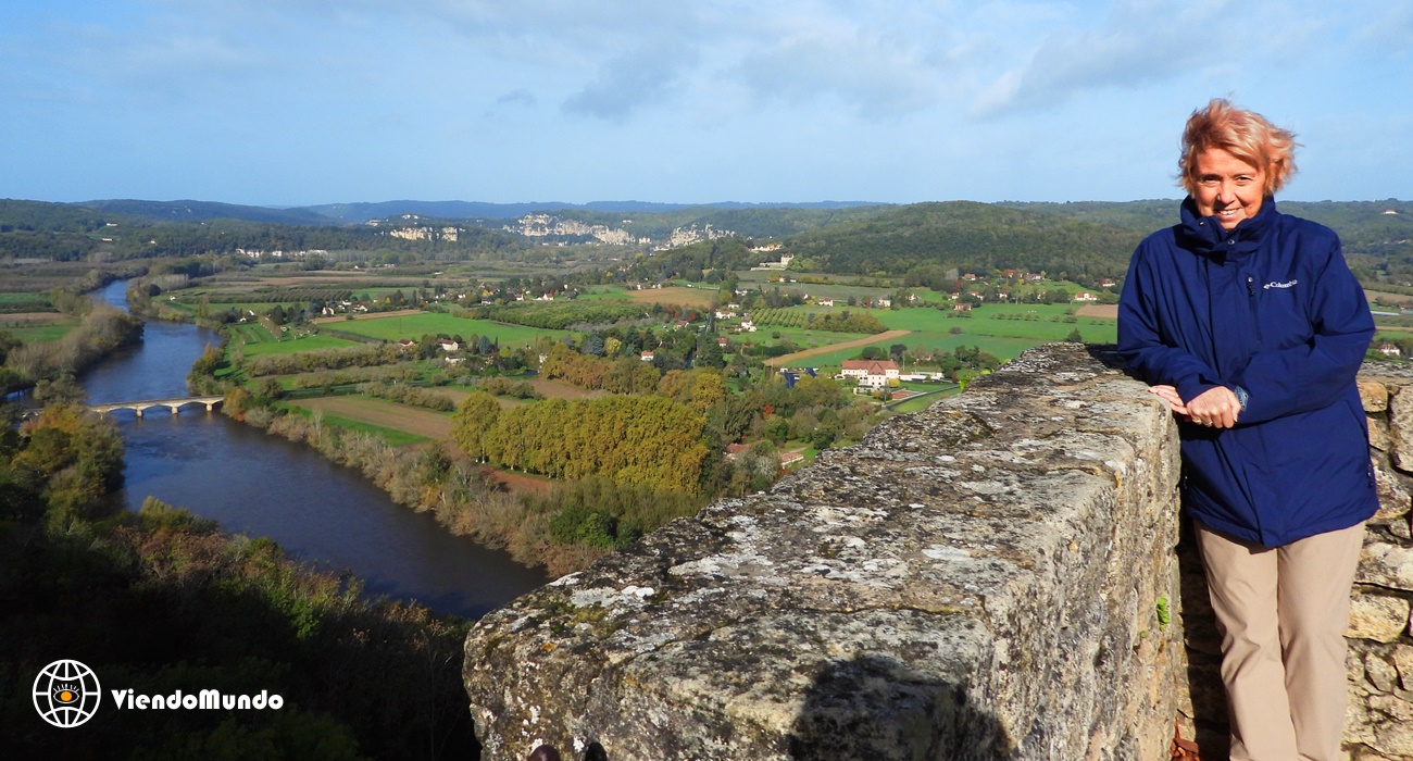 Seguimos desafiando al tiempo moviéndonos por el itinerario previsto, visitando primero "Domme", que el buen tiempo en ese momento nos ha permitido ver el bello paisaje de la "Dordoña" desde su mirador y poco más, porque como no estábamos demasiado interesados en entrar en la gruta de "Domme" y ya llevamos muchas cuevas visitadas en nuestros viajes repitiendose bastante, sólo hemos dado una vuelta por el pueblo, que habíamos leído que era uno de los más bonitos del "Perigord Negro" y que nos ha decepcionado porque era una sucesión de casitas restauradas que habían perdido la gracia de la arquitectura medieval, solo con tiendas turísticas. Un pueblo más de los muchos que hay en la zona y que poco ofrece de novedoso respecto al resto. Parece que estas localidades encuentran un medio de subsistencia gracias al turismo, explotándolo todo lo que pueden con medidas irracionales como la que hemos sufrido al aparcar en "Domme". Sirve de ejemplo que el tiquet mínimo de la máquina, era de una estancia de 3 horas, cuando no tardábamos más que tres cuartos de hora en visitarlo.
